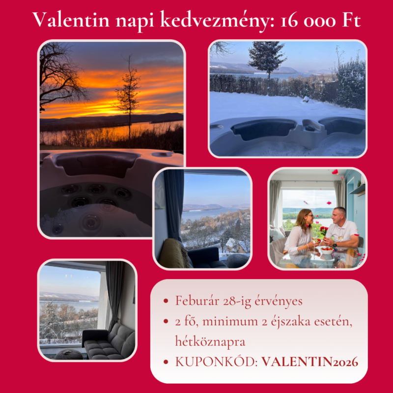 Szállóvendégeink díjmentesen használhatják az udvaron található kültéri jakuzzit, melyről páratlan kilátás nyílik a Dunakanyarra